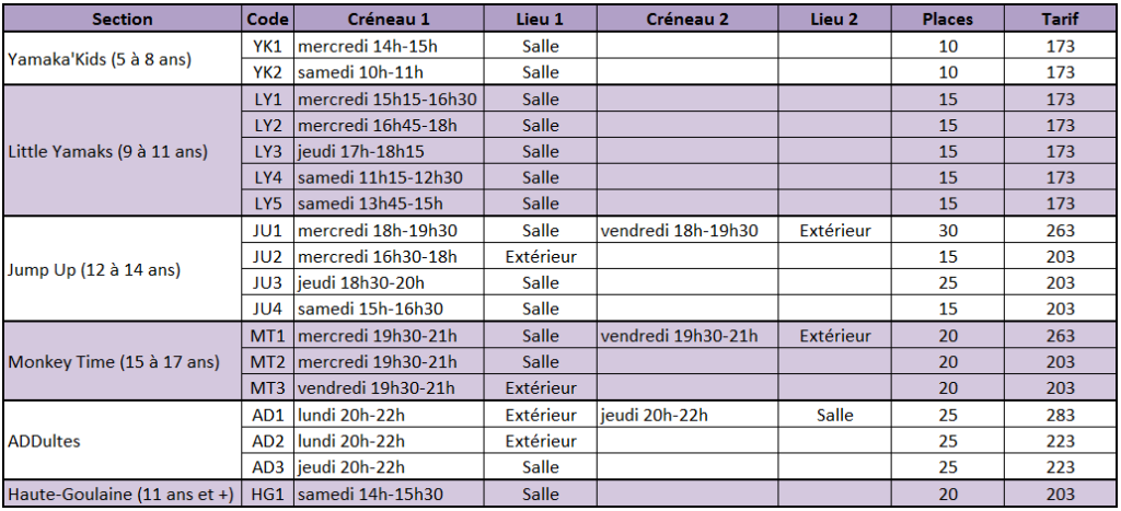 Désolé pour le retard dans le lancement de la campagne d’adhésions, les problèmes techniques sont en cours de résolution.En attendant, voici les différents cours qui seront proposés à la rentrée.