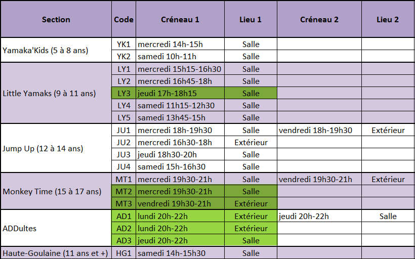 Little Yamaks (9 à 11 ans) le jeudi(complet)- Monkey Time (15 à 17 ans)