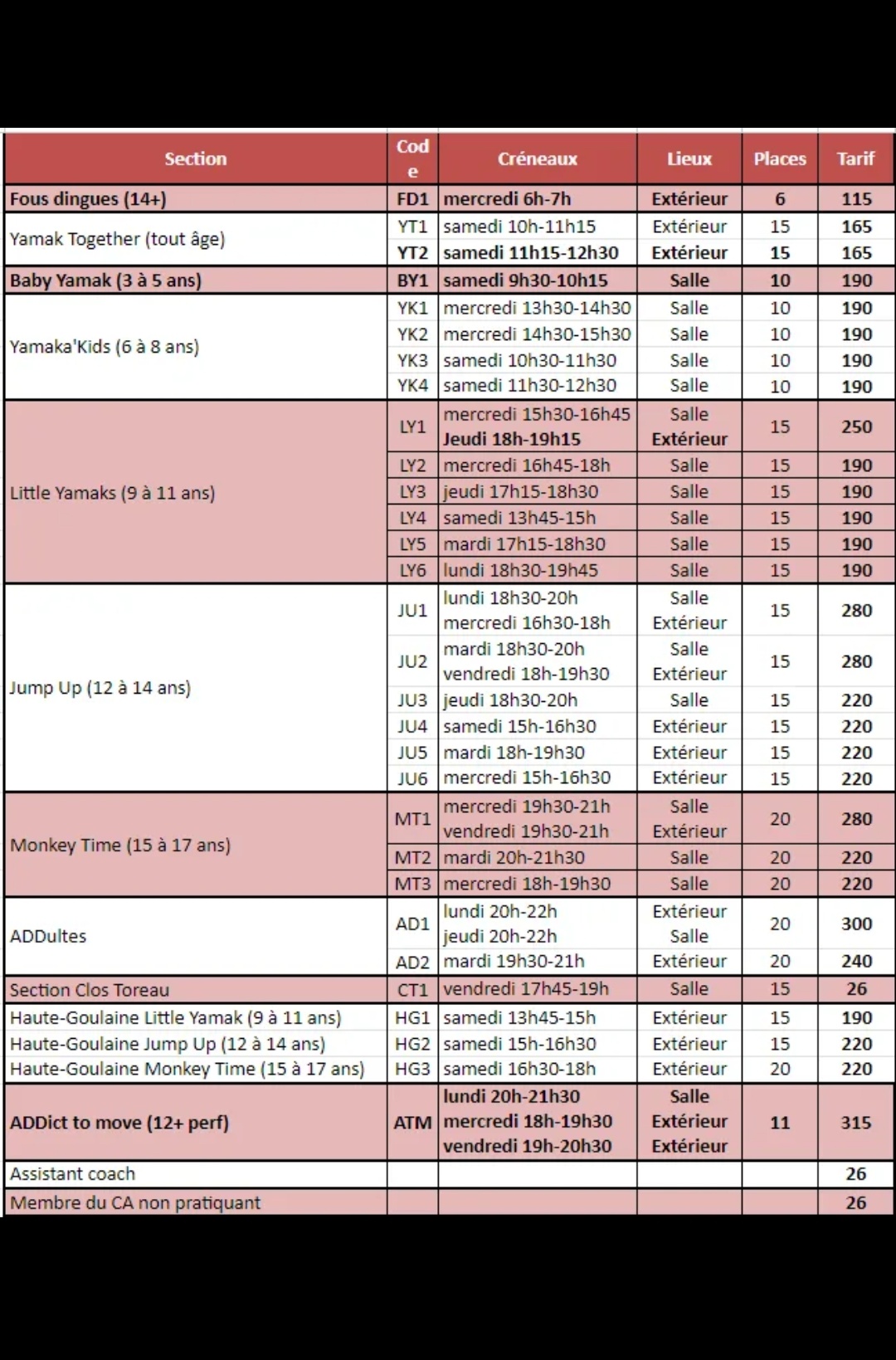 Agenda des cours