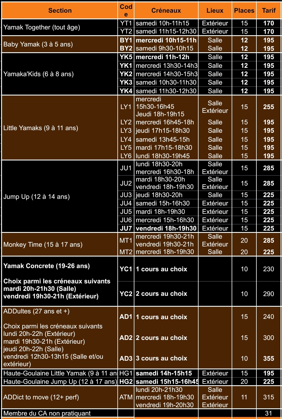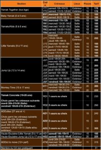 Agenda des cours